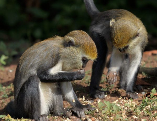 - Close-up interaction with Mona monkeys